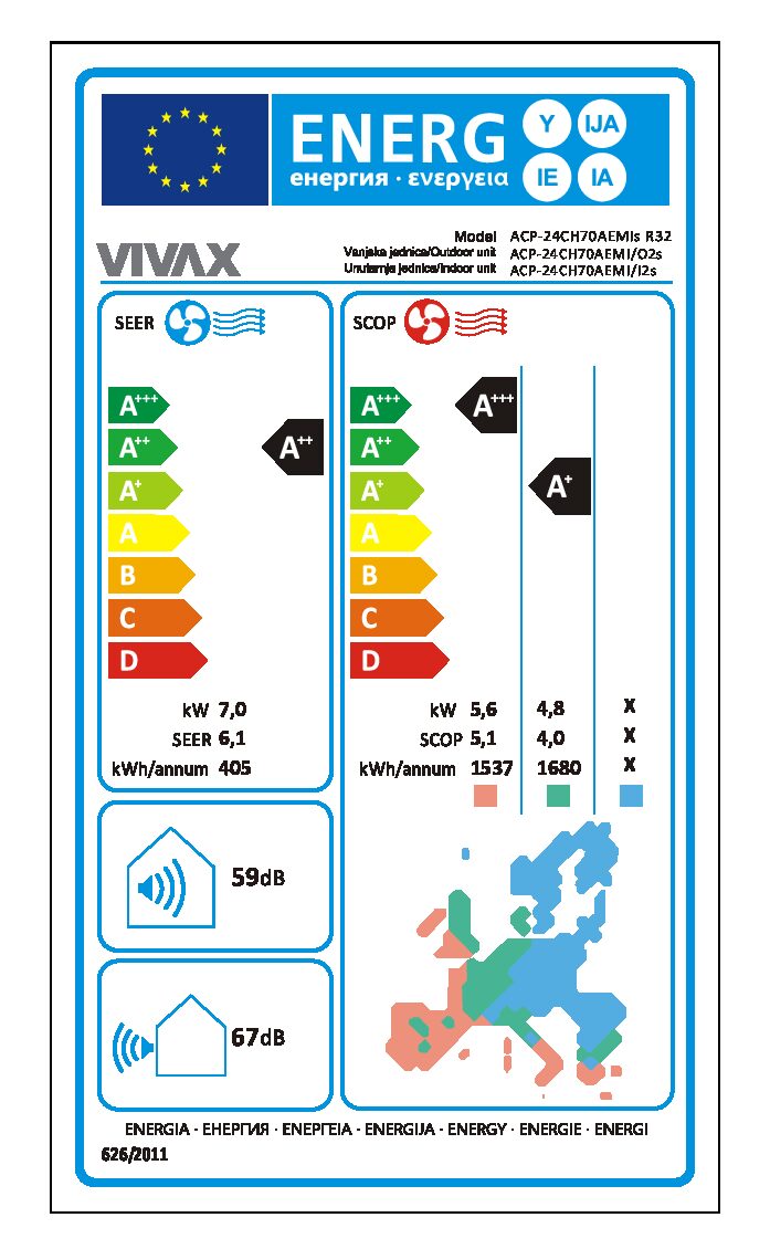 Základné vlastnosti 7,3kW klimatizácie VIVAX ACP-24CH70AEMIs R32